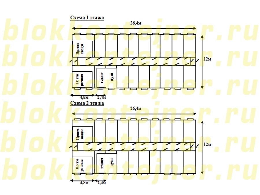 Блок - модуль  26,4 *12,0*5,0м  состоит из 44 блок-контейнеров